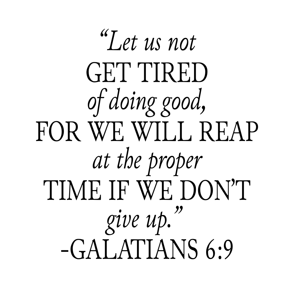 In this verse about growing weary, we can easily assign this application to ourselves, assuming the context is for us not to grow weary living our lives our way. But the context is about helping others, serving others, and loving others. As followers of Jesus, we can take the focus of ourselves and put it on others. Relationships are messy and we will at times grow weary in loving and serving those who need our help. Don’t quit, don’t give up, and don’t grow weary. You are never more like Jesus than when you serve and love those who have been overlooked by others. He will give you the strength you need.