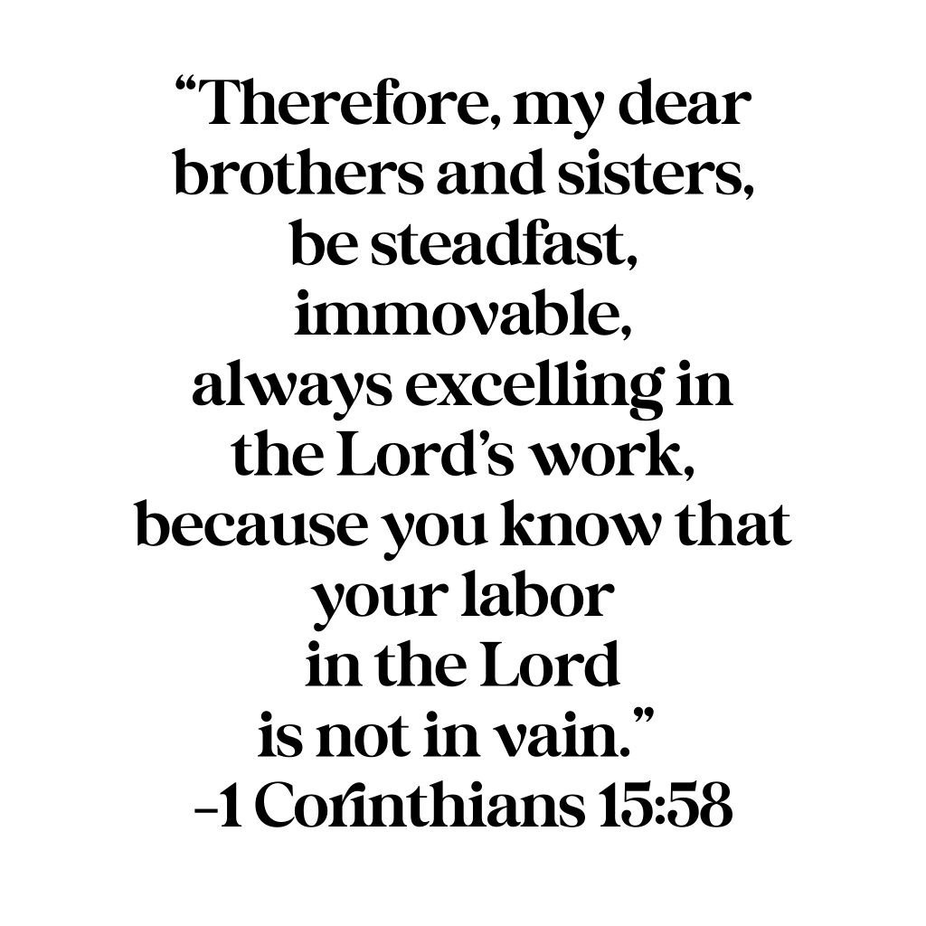 As we work out our calling we must do so with urgency and tenacity. We are called to be steady and immovable. We are called to lean on Jesus and to hold fast to His promises.